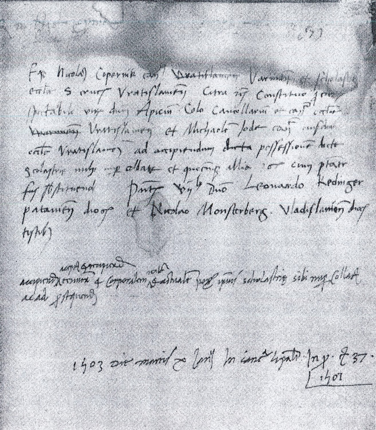 Dodajmy, iż podpis Kopernika w formie „Nicolaus Copernicus” znajduje się w dedykacji tej książki poświęconej wujowi Astronoma Łukaszowi Watzenrode – biskupowi warmińskiemu, a nie na karcie tytułowej. Zarówno dla ojca, jak i syna używanie nazwiska „Copernik”, czytamy „Kopernik”, było formą pierwotną. Ciekawa byłaby opinia językoznawców co do imienia ojca Kopernika „Nikloz”, „Nikloc”, „Nikos”, bo tak słyszał to imię pisarz zapisujący czynsze z łaźni w języku niemieckim.