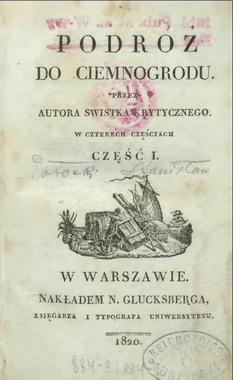 W 1820 r. Potocki opublikował Podróż do Ciemnogrodu – zjadliwą satyrę na tajemniczy, daleki i egzotyczny kraj, w którym rządziły ciemnota, zabobon i wszechwładna, przesądna religia, będąca przykrywką dla chciwości kleru. Podlegająca mu jako ministrowi oświaty cenzura zezwoliła na druk tego dzieła, po jego opublikowaniu wybuchł skandal. Po interwencji biskupów Potocki został zdymisjonowany ze stanowiska i w 1821 r. zmarł.