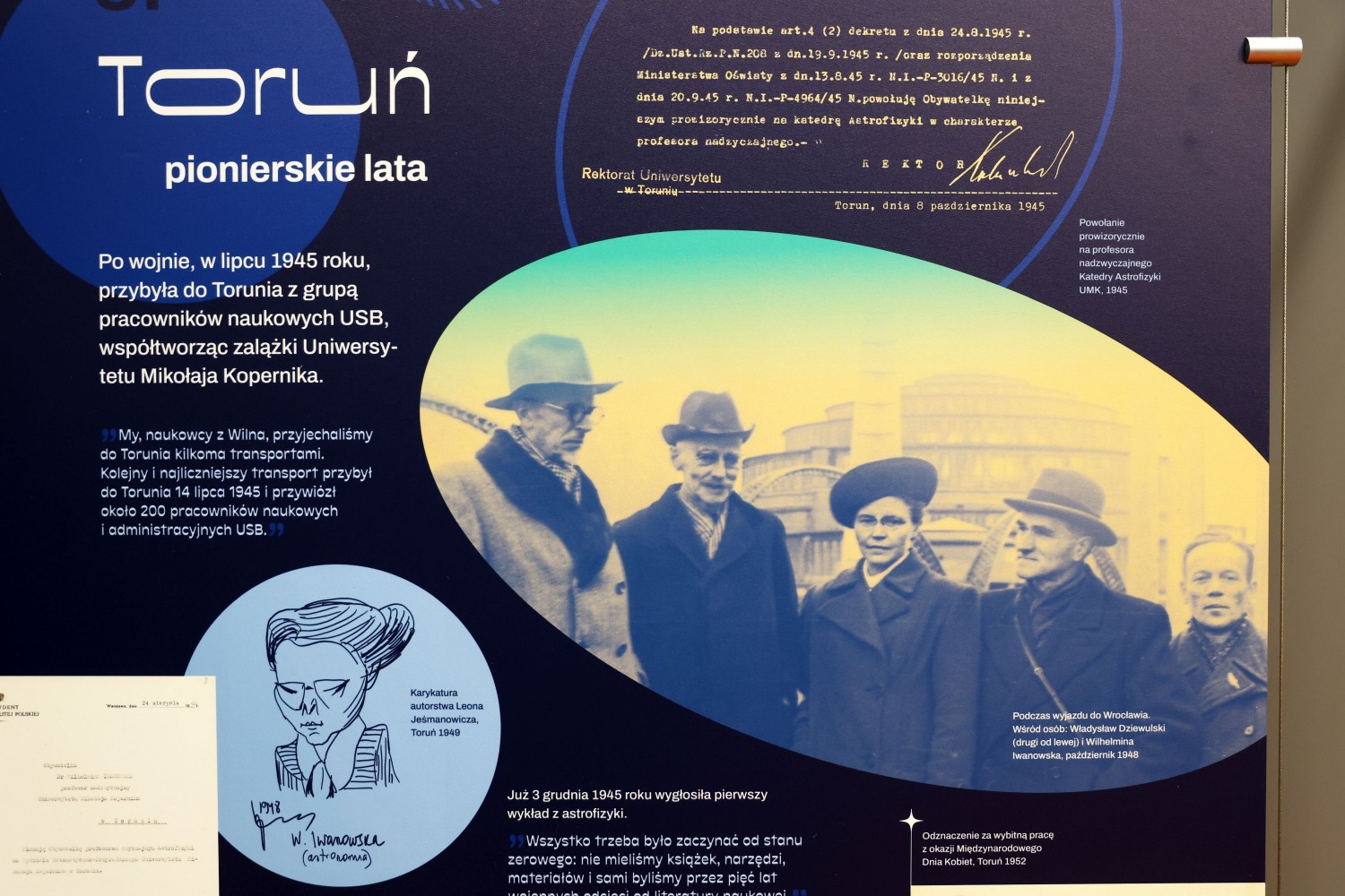 Ówczesne władze bynajmniej nie dawały swobody wyboru, ale my uparliśmy się przy wyborze Torunia, a jednocześnie wysłaliśmy na zwiady dr. Stefana Burhardta, który był w Wilnie dyrektorem publicznej Biblioteki Wróblewskich, żeby pojechał do Torunia i sprawdził, jaka jest atmosfera. On się tu rozejrzał, nawiązał pewne kontakty, m.in. z dr. Mossakowskim, a po powrocie stwierdził: „jedziemy do Torunia”. Wtedy już nie wahaliśmy się. Oczywiście głównym dla nas magnesem był autorytet Mikołaja Kopernika; nie tylko dla astronomów, bo też Kopernik był i ekonomistą, i filozofem, i nawet może poetą. Ówczesne władze chciały nas co prawda osiedlić tymczasem w Łodzi, tak samo zresztą jak Uniwersytet Jana Kazimierza ze Lwowa, no ale oni dość szybko wylądowali we Wrocławiu. Podkreślę, że szczególne znaczenie miał Wydział Sztuk Pięknych, bo wtedy żaden inny uniwersytet takiego wydziału nie miał. Pamiętam jeszcze Ferdynanda Ruszczyca, organizatora WSP w USB, wspaniałego malarza, zresztą tych znakomitych artystów było tam bardzo wielu. Wcale niełatwo było w Toruniu restytuować ten Wydział, bo władze mówiły, że są przecież wyższe szkoły artystyczne, więc czemu jakiś uniwersytet miałby coś takiego organizować. No, ale udało się.