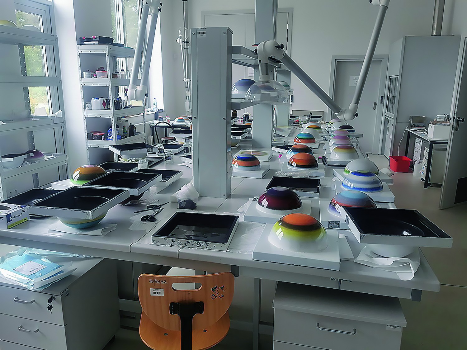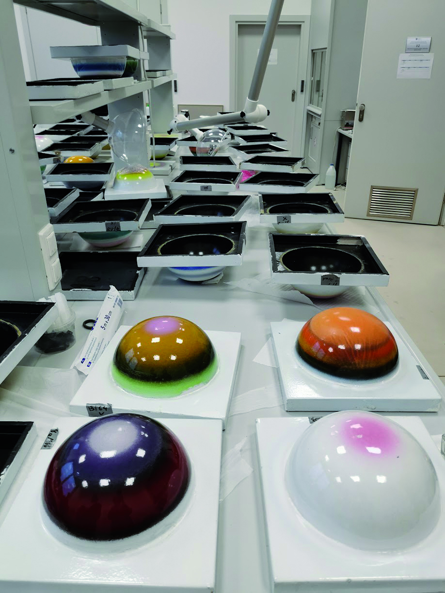 – Tak, wiedzieliśmy, że to technika emalii. To jedna z najstarszych technik zdobniczych, znana od starożytności, jednak wówczas wykorzystywana była do dekorowania przedmiotów użytkowych, dewocjonaliów, obiektów kultu. Stefan Knapp wyniósł tę technikę do rangi wielkoformatowej dekoracji architektonicznej, sam zresztą pisał, że emalia to jego wkład w malarstwo ścienne. I rzeczywiście tak było. W Polsce bliźniaczą mozaikę można obejrzeć na olszyńskim planetarium, dwie kolejne prace na warszawskiej stacji metra „Wilanowska”.