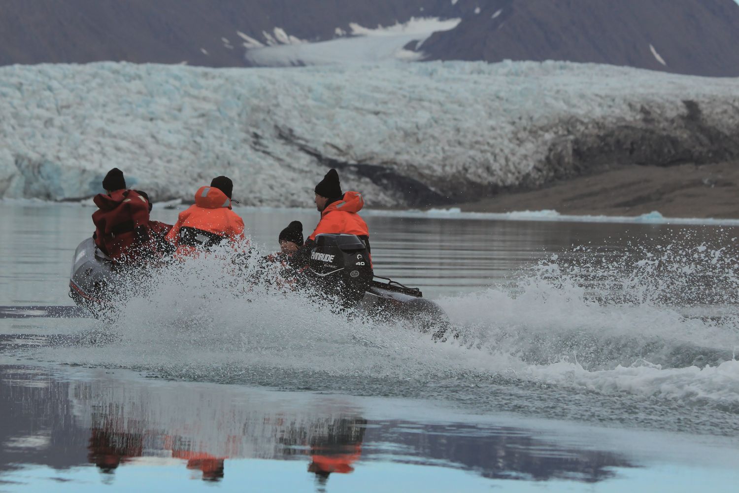 Mamy też przełom rzeczny, w którym mierzymy odpływ wody z lodowców. On akurat jest bliżej, około 4 kilometrów w jedną stronę, ale i tak trzeba tam dojść pieszo. Często korzystamy też z łodzi, by dostać się na drugą stronę zatoki albo w bardziej odległe miejsca, co bardzo ułatwia pracę. Trzeba jednak pamiętać, że w okresie letnim nie można tam używać pojazdów kołowych, jest to zabronione. Wiosną, kiedy jest śnieg, możemy poruszać się skuterami śnieżnymi, ale latem wszystko odbywa się na własnych nogach.